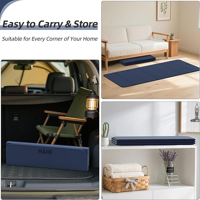 - 【Yoga Mat for Travel】The foldable yoga mats features an innovative seven-fold design, measuring 188x80x0.8cm when unfolded, and just 80x27x6cm Inch when folded, easy to store under the sofa and in the trunk of the car