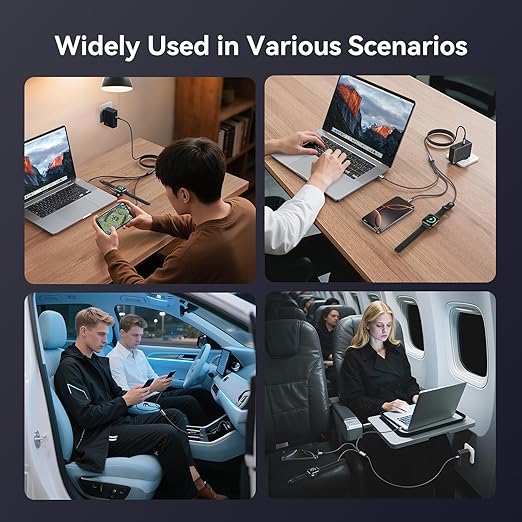 - 【Dual USB-C Ports & 3-in-1 Design】 Features 2 dedicated USB-C ports to simultaneously fast charge two Type-C devices (Max 60W+12W). The 3-in-1 combo (Dual USB-C + iWatch Charger) covers your —phone, watch, tablet, earbuds, switch—with one single cable, eliminating clutter.