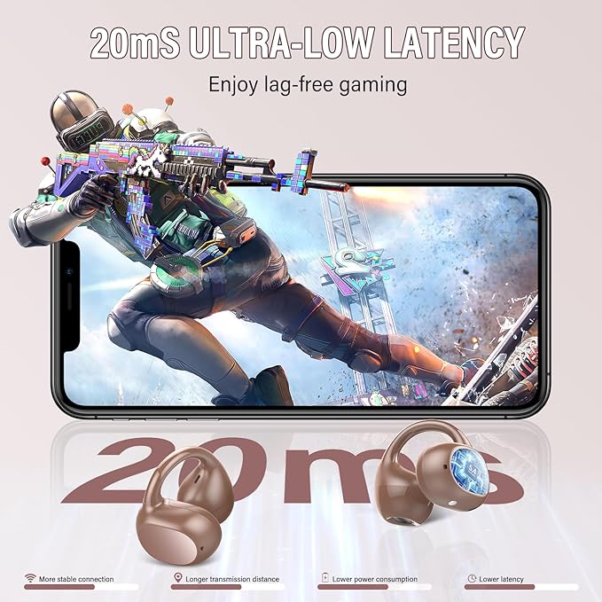 - Stable Bluetooth 5.4 Game Mode: Open ear earbuds With latest Bluetooth 5.4 chip ensures stable, interference-free connections even in crowded environments like malls or subway stations. Switch on low-latency gaming mode to enjoy perfectly synchronized sound and visuals, bringing a smooth, immersive experience whether youβre gaming, streaming, or watching movies.