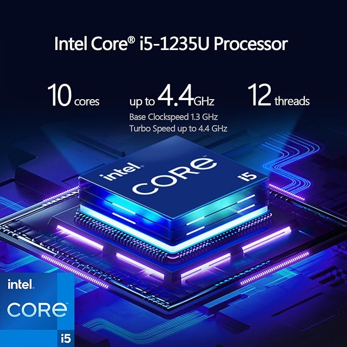 - 【Processor】The Intel Core i5-1235U processor, with up to 4.4 GHz clock speed, 10 cores, and 12 threads, delivers efficient multitasking and strong performance for productivity tasks, light content creation, and everyday computing needs.