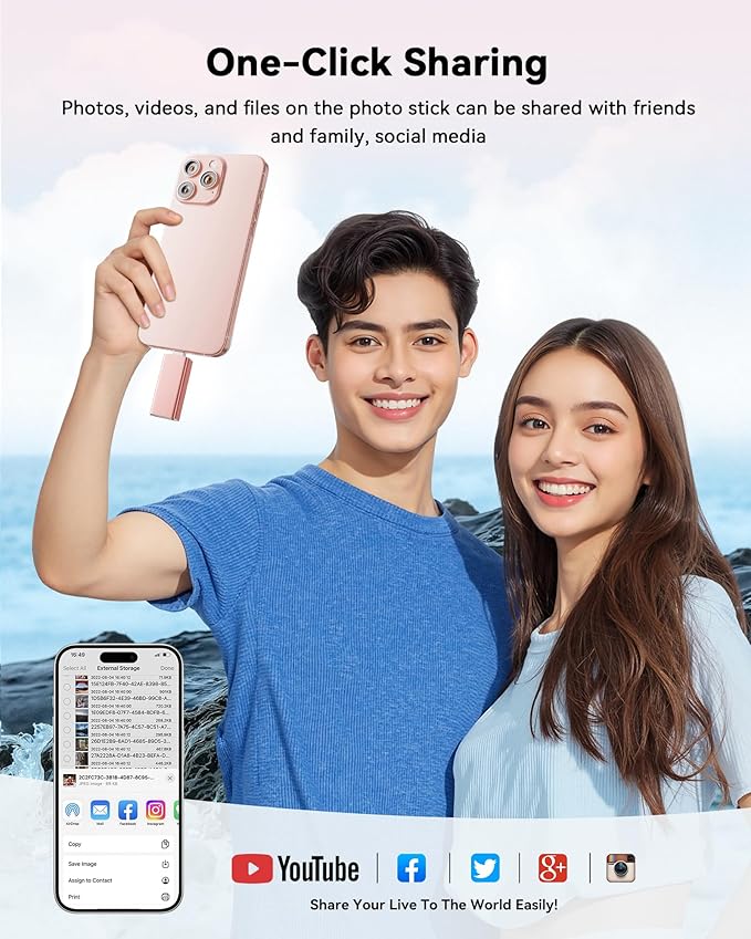 - 【Portable, Stylish, and Secure】Compact and lightweight, this encrypted iPhone flash drive is available in pink and blue. Use the app to set a password and keep your personal files safe, which make the photo stick offering added security for your important data.