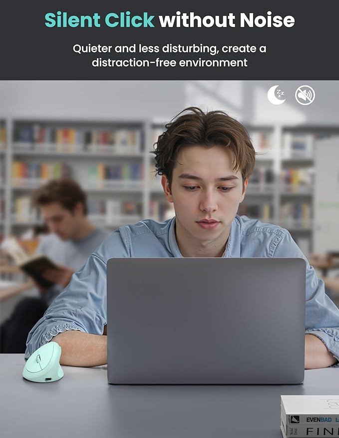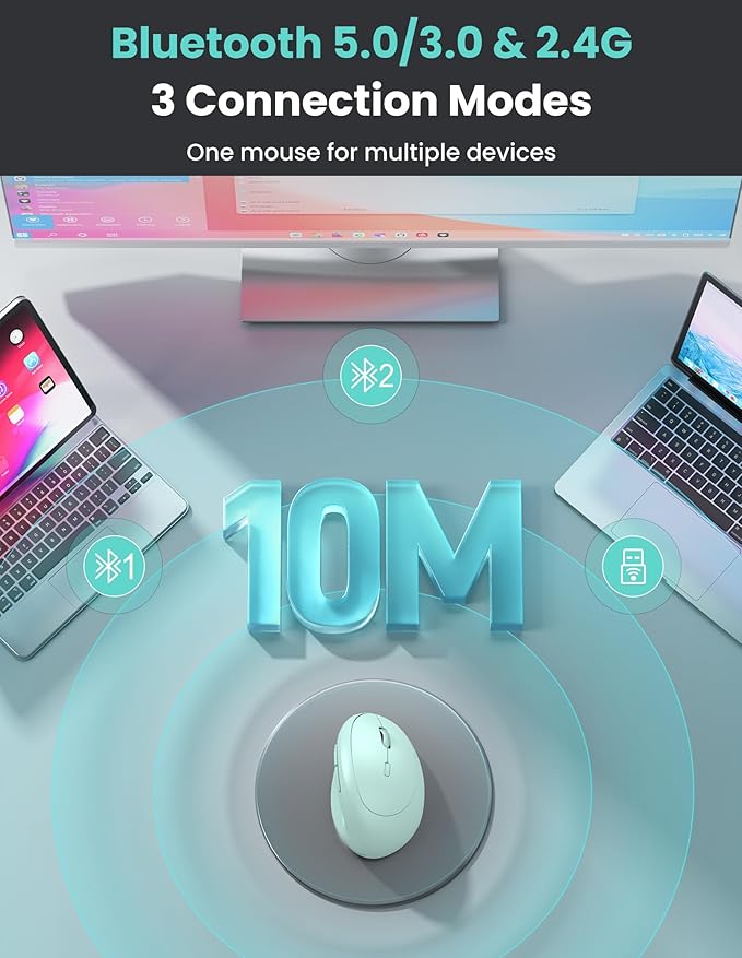- 【Whisper-Quiet Clicks for Distraction-Free Environments】The wireless ergonomic mouse's silent click technology reduces noise by 99%.Whether you're in a library, open-office plan, or cozy living room, enjoy silent precision. This wireless ergonomic mouse compatible with Bluetooth and 2.4G connections, Fully compatible with Windows (11/10/8/7/XP) and Mac OS X10.4—effortlessly pair with desktops, laptops, and tablets for versatile use.