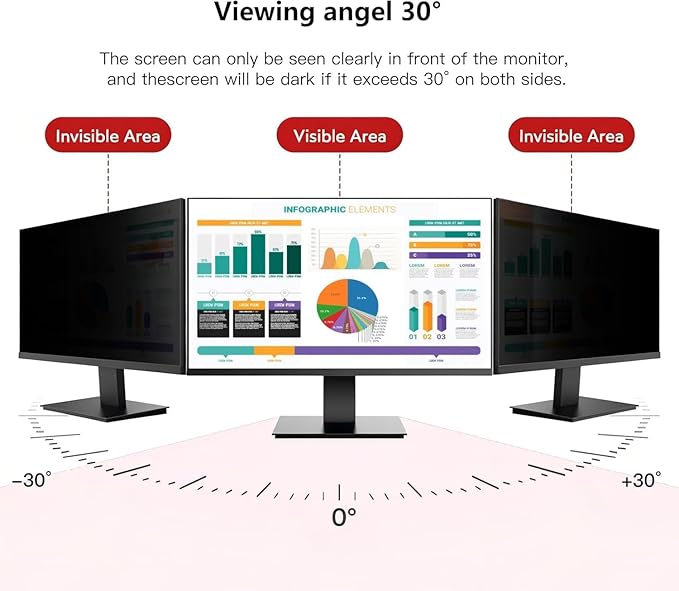 - 【Superior Privacy 】- the content directly in front of the screen (within +-30° angle) is visible. Premium Computer privacy screen filter keeping your important information confidential and protects sensitive information, making it ideal for use in high-traffic areas. It uses revolutionary micro-louver technology. Anti-Scratch Technology.