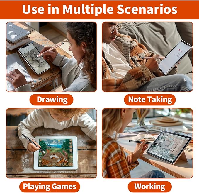 - 【Stylus Pen for Touchscreen】Our stylus pen requires no Bluetooth pairing or charging, you can unleash your creativity anytime and anywhere, just pick up the stylus and express your thoughts freely on the touch screen.