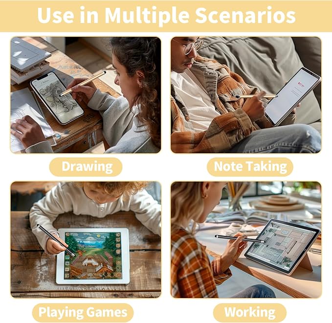 - 【Stylus Pen for Touchscreen】Our stylus pen requires no Bluetooth pairing or charging, you can unleash your creativity anytime and anywhere, just pick up the stylus and express your thoughts freely on the touch screen.