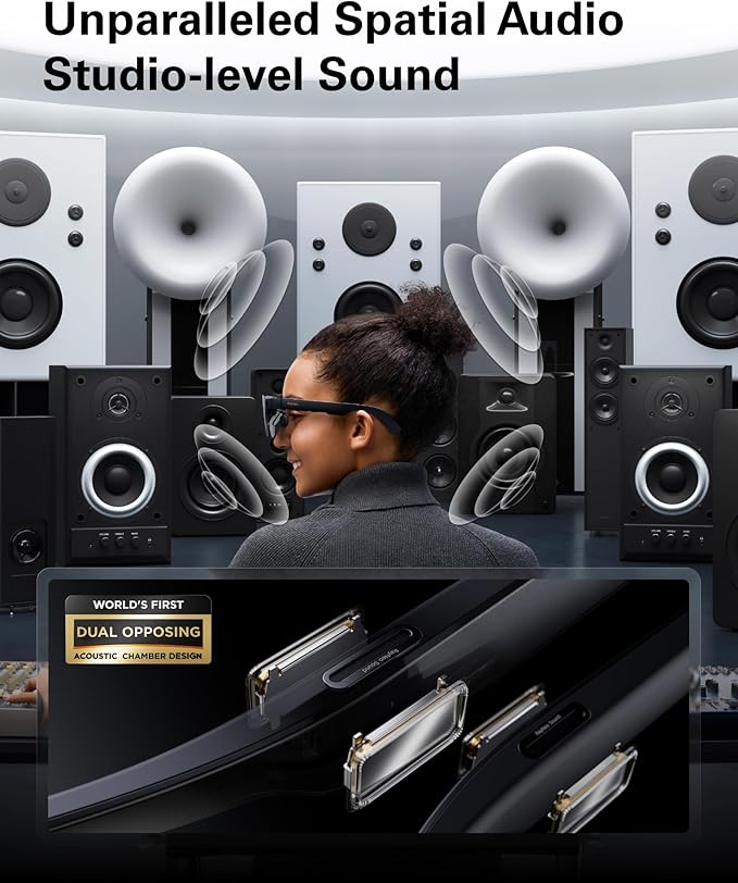 - [Immersive Audio – Whisper Mode Privacy Sound] Self-developed quad-speaker system with spatial audio algorithms delivers theater-grade surround sound that follows your head movement. Whisper Mode focuses audio directly to your ears for private listening.