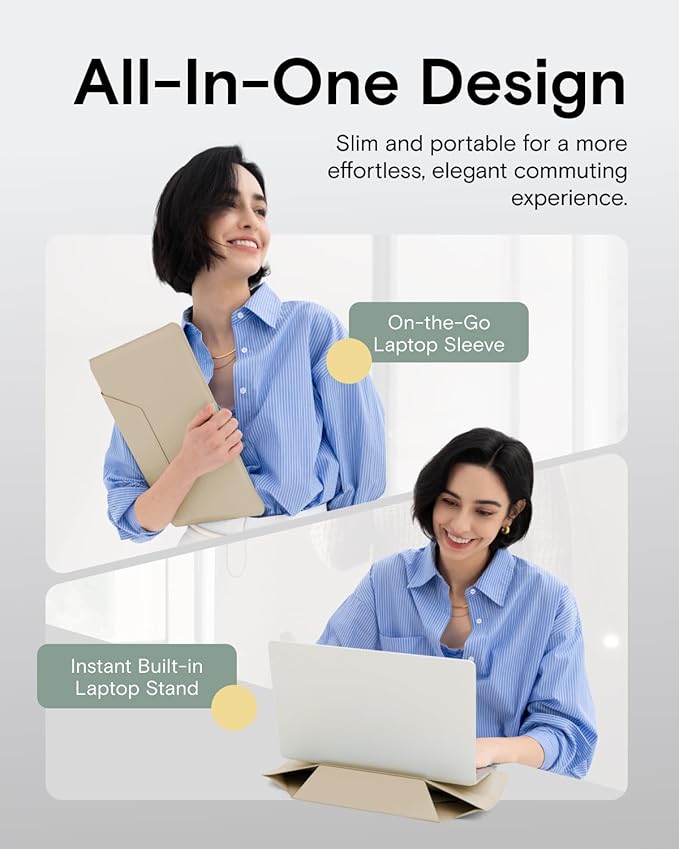 - Two Angles Laptop Sleeve Stand: Instantly convert this sleek Laptop Sleeve into a sturdy Laptop Stand. Features dual-angle adjustment (15° for typing; 25° for viewing) to elevate your screen, reducing neck/wrist strain from poor posture. More than a protective Laptop Bag, this ergonomic Computer Bag works anywhere – transforming your carry sleeve into a pain-relieving workstation.