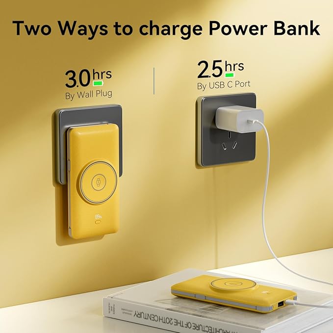 - 6 Devices Charging Simultaneously: This portable charger battery pack features 5 outputs, including 3 cable outputs and USB-C & USB-A outputs. At the same time, you can use wireless charging on the front of the power bank to charge your mobile phone or watch, Charge up to 6 devices simultaneously. For Mag-Safe power bank supports 5W, 7.5W, 10W and 15W wireless charging; USB-C ports support Power Delivery up to 20W, allowing for fast charging of USB-C enabled devices; USB-A ports deliver up to 22.5W, supporting Quick Charge 3.0 for rapid charging of legacy devices