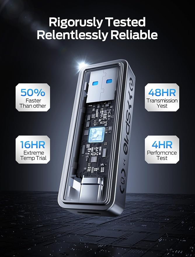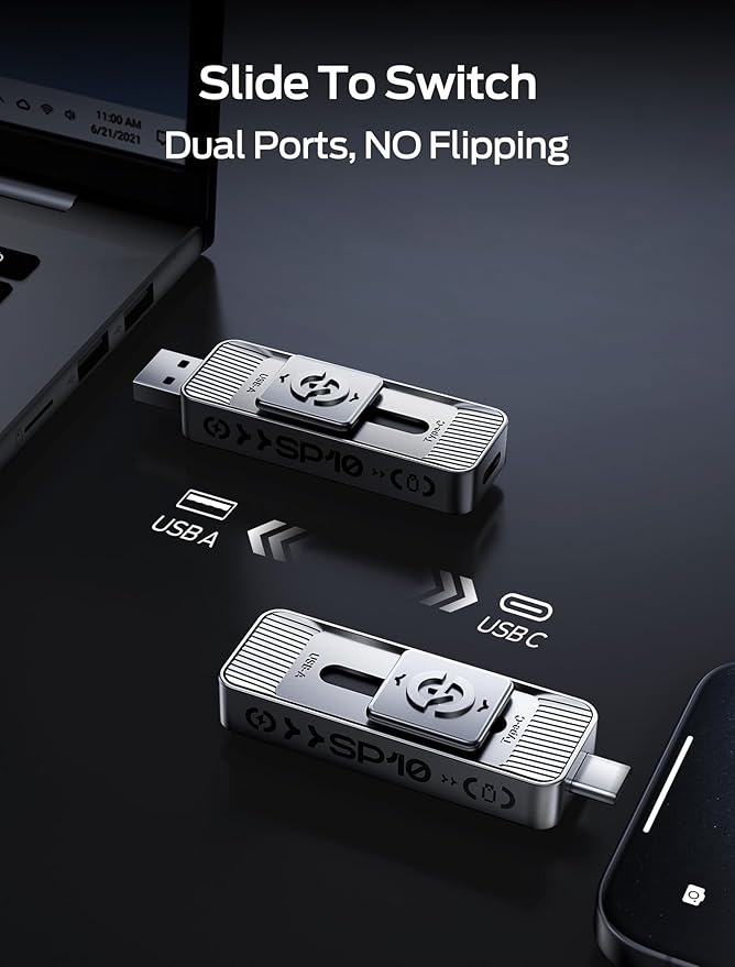 - 【Smart Dual USB-C & USB-A Ports - No Flip Needed】Connect to ANY device instantly! SP10 features both USB-C and USB-A ports on the same end – no flipping or adapters needed. Effortlessly switch between ports in seconds. Never lose a port cap again! Durable construction withstands drops and bumps.