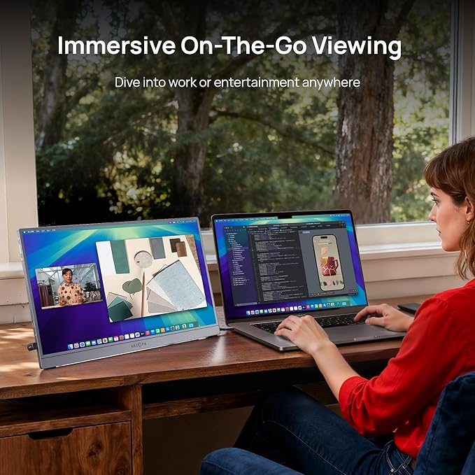 - [Designed for On-the-go Convenience] Just 2.16lb in weight, with a 0.36 inches slim profile and a narrow bezel that maximizes screen space. The integrated stand eliminates the need to carry an extra case to support the monitor, simplifying your portable setup. Ideal to be packed with laptop, convenient for on-the-go use
