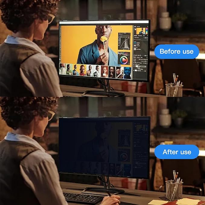 - 【Scratch Resistant and Washable】Our privacy anti-glare display film has a surface enhancement layer that protects the privacy filter from scratches and fingerprints. Washable and Reusable. Even after prolonged use, you will get a brand new desktop computer monitor privacy screen after cleaning.