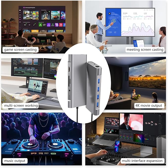 - 【Universal Compatibility】Works seamlessly with MacBook Pro/Air, iPad Pro, Dell XPS, Surface, Lenovo, HP, Chromebook, and more USB-C laptops or tablets. Compatible with Windows, macOS, ChromeOS, and Linux. A must-have USB hub for laptop docking stations at home, office, or on the go.