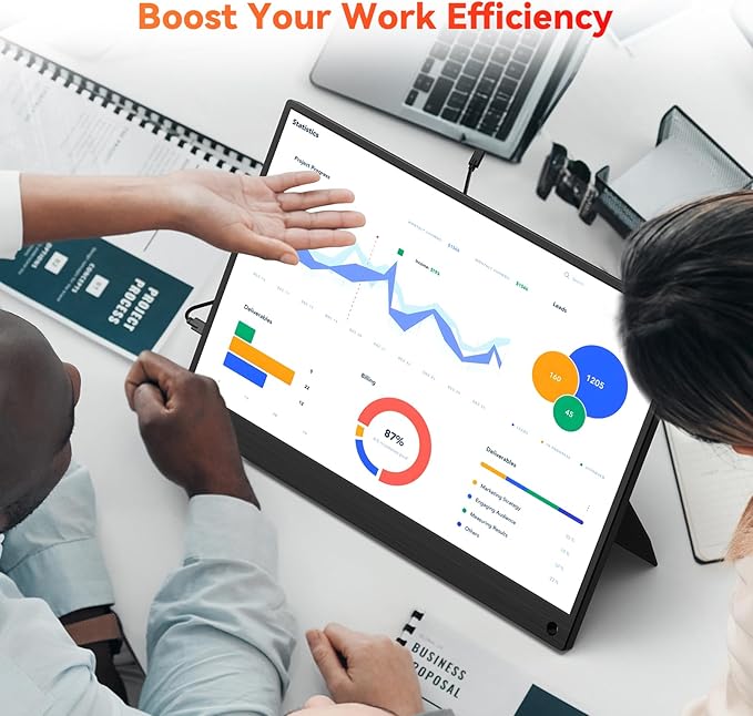 - Multiple Flexible Modes - HotYeah laptop monitor can be used as the main screen alone. Also, you can mirror your laptop screen with your colleagues in meetings or extend your laptop window tags for multitasking, increasing productivity by 300%. Mirror your phone screen to enjoy a clear movie or duplicate your Switch to gain a better gaming experience. Optional landscape and portrait modes can be adjusted to handle different work, like editing photos, reading documents, and analyzing data.