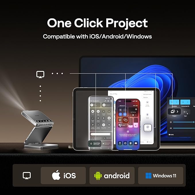 - 1.5-Hour Playtime & PD Fast Charging — With a built-in 5000mAh battery, ZIP travel projrctor delivers up to 1.5 hours of video—ideal for movies, workouts, or stories. Recharge quickly with 24W Type-C PD (adapter required for use while charging)