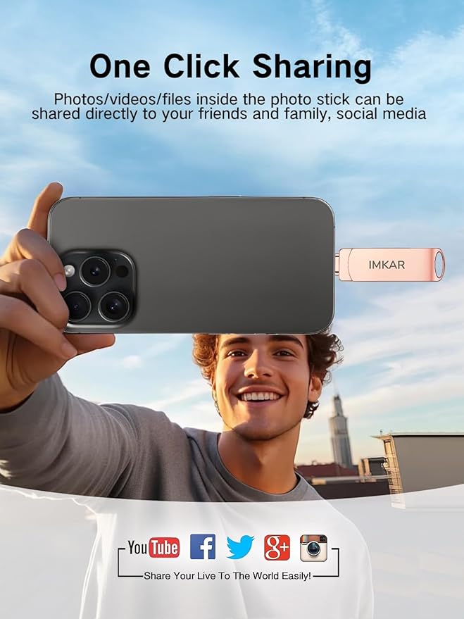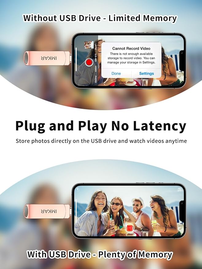 - 【Watch Movies, Photos and Play Music Directly From Phone Flash Drive】Store your favorite videos, audios and music on your iPhone's Photo Stick, then seamlessly plug and play on your iPhone or iPad anytime, anywhere. No more need for Internet or WiFi. This iPhone storage device plays videos in many different formats. Pictures stored on the Phone storage device also support different formats. Great way to store all your pictures and videos on an phone external storage device.
