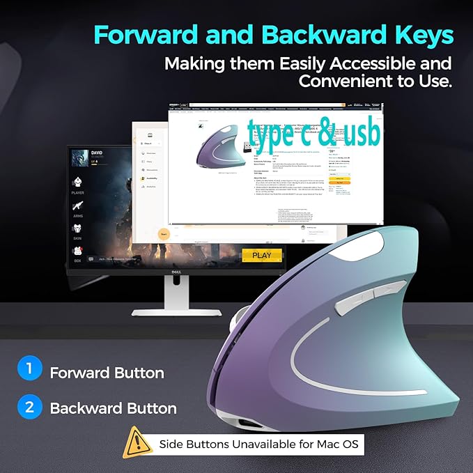 - 【Widely Compatible】 ergonomic vertical mouse is widely compatible with Windows 2000 / XP / Vista / 7 / 8 / 10 / Linux. ** Note: Not compatible with Mac OS, Apple Products ** Live smart, Live healthy, raise your hand into comfort. Once you get used to the carpal tunnel mouse, you will love it so much,It is also suitable for devices equipped with USB A or Type C ports. Eliminate the worry of incompatibility with your device