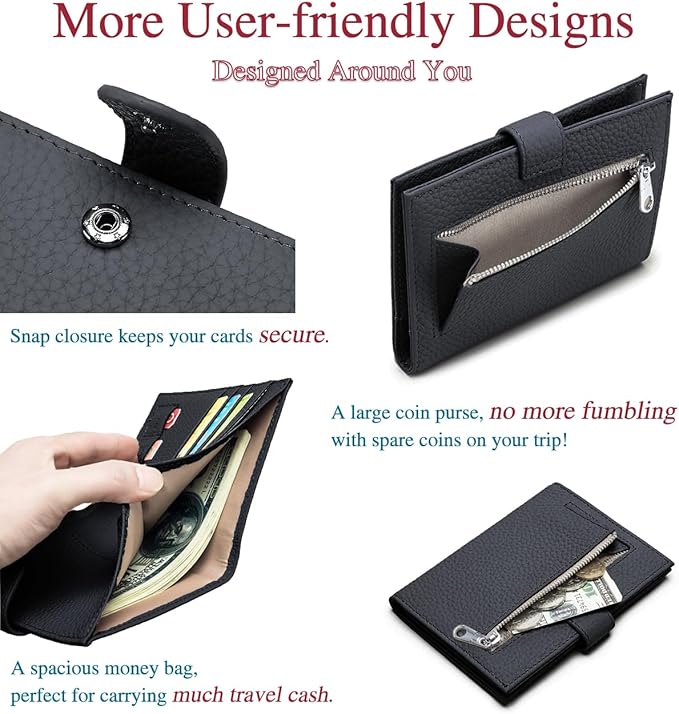 - ✅【All-in-One Travel Organizer】 Designed for modern women on the go, this leather passport holder fits your passport, credit cards, boarding passes, SIM cards, travel documents, and cash. Includes a back zipper pocket for coins and a secure SIM card ejector tool—making it a must-have for international travel.