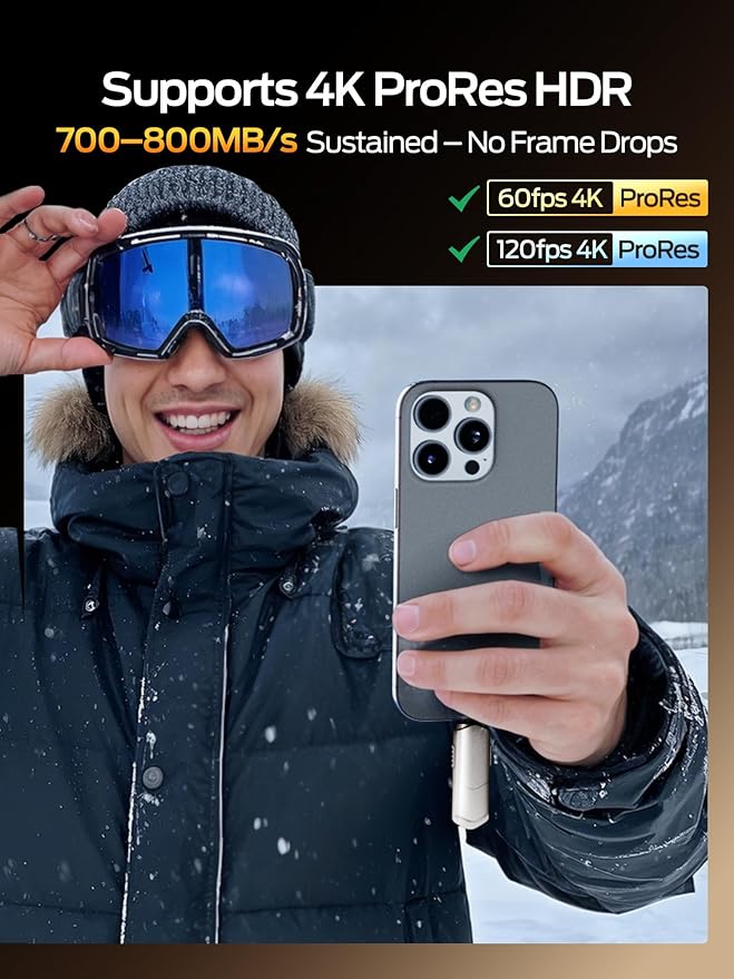 - 【4K ProRes HDR Ready】MOVE SPEED NT 10 usb ssd is your great partner for iPhone 15, 16 Pro/Pro Max. External ssd supports 4K ProRes HDR video recording—just connect this USB - C external drive to your iPhone. Record videos directly onto the usb ssd, no extra transfer needed. Capture every detail in stunning quality and skip the hassle of moving files later.