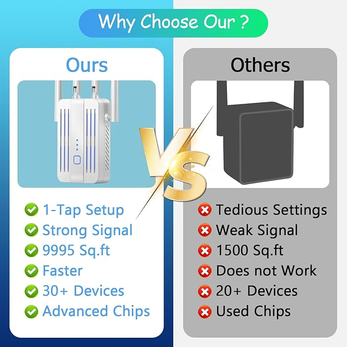- Up to 9995 Square Feet - Indoors and Outside: Never get stuck behind thick walls, appliances and cement floors, Delivers ultra-stable bandwidth for online gaming, video conferences and even streaming 4K HD videos.