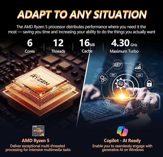 - ULTIMATE POWER: Equipped with a fast and powerful AMD Ryzen 5 processor (6 cores, 12 threads), the HP 17 laptop computer is built for seamless multitasking and enhanced producitivity - ideal for business, students, and creators. Whether you're gaming, video editing, or coding, the HP 17 inch laptop delivers smooth and secure performance. Enjoy immersive visuals with AMD Radeon Graphics on the HP Ryzen 5 laptop 17.3 inch for work, school, or entertainment