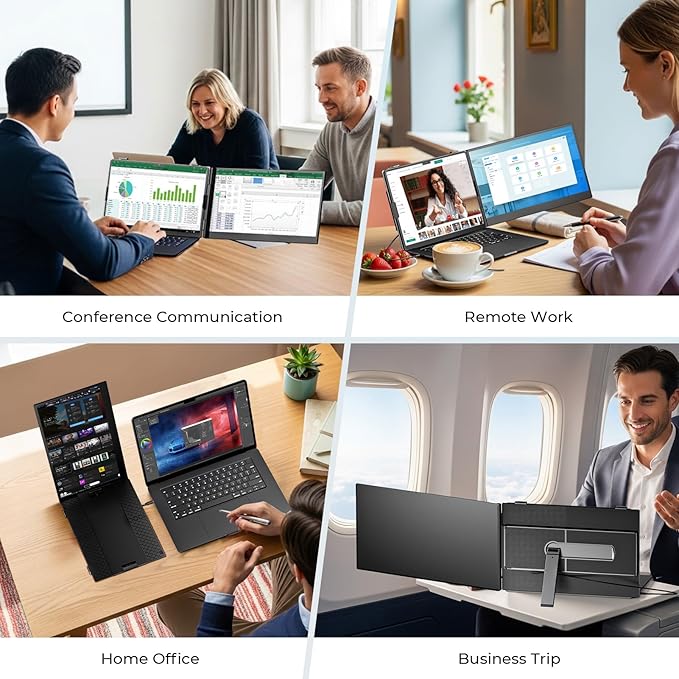 - 【Boost 200% Productivity】The laptop monitor extender expands your laptop to dual screens monitor instantly. Effortlessly view spreadsheets, design tools, chats, movies or games without the hassle of constantly switching tabs. With the ability to toggle between extended and duplicate modes, you can minimize tab-switching fatigue and enhance your workflow. Perfect for airports, cafés, or meetings, this portable monitor is a must-have for anyone looking to maximize efficiency on the go.
