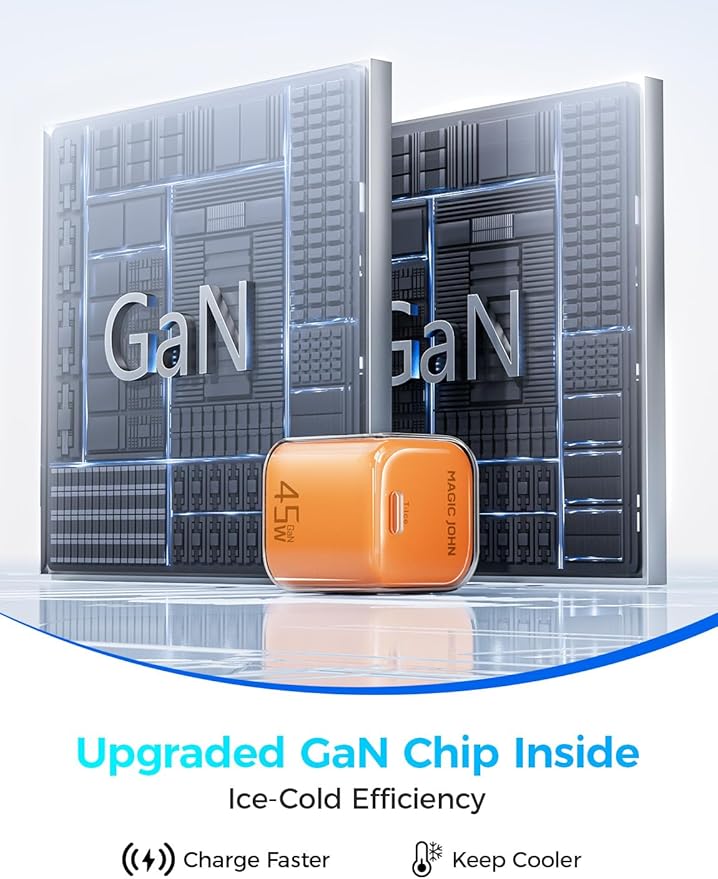- Compact Powerhouse: MAGIC JOHN 45 W charger block is 70 % smaller than a standard adapter and just as fast—easy to take anywhere