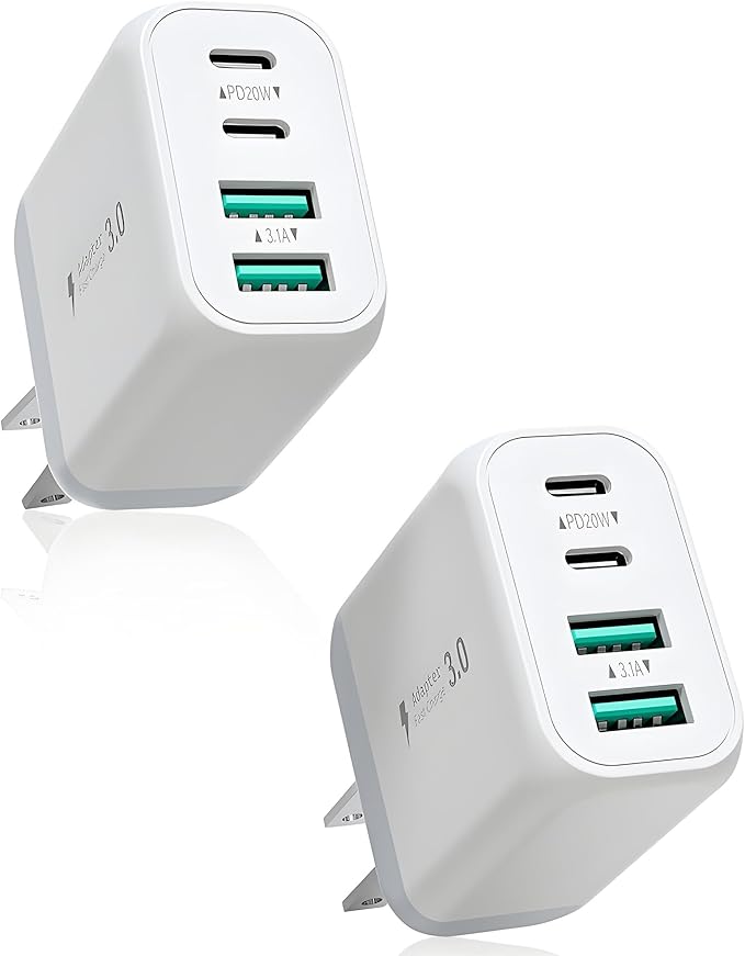 - [ What You Get ] 2 Pack 40W 4 port iPhone 17/iPhone 16 fast charger block(Dual USB C Port+Dual USB A Port).If you have any questions, please do not hesitate to contact us! We offer friendly customer service(cable not included)
