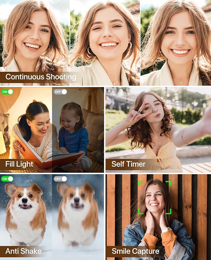 - POCKET-SIZED & POWERFUL FUNCTION -This small compact retro camera is easy fits in your pocket and functional for teenagers and adult beginners. The photo looks retro when taken. Nine shooting modes such as Night, Landscape and Backlight plus multiple optional filters can be used for most shooting scenarios; The beauty function, anti-shake, continuous shooting, detect smiley face auto shooting effect and time-lapse self-timer (2/5/10S) can help you get beautiful portrait photos.