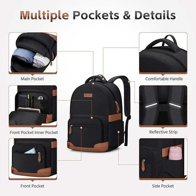 - Ergonomic & Travel-Friendly Design: The padded straps and supportive back system offer comfort all day long. Plus, the luggage strap allows easy attachment to suitcases, enhancing the functionality of this carry on backpack for trips and daily use
