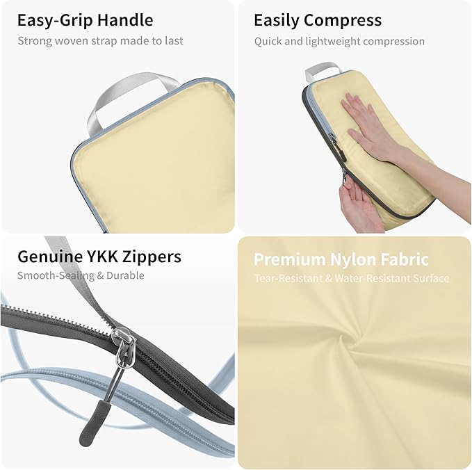 - Durable yet ultralight: Made with 100% 210D nylon and real YKK zippers, these compression packing cubes are tear-resistant, splash-proof, and strong enough to withstand frequent use.