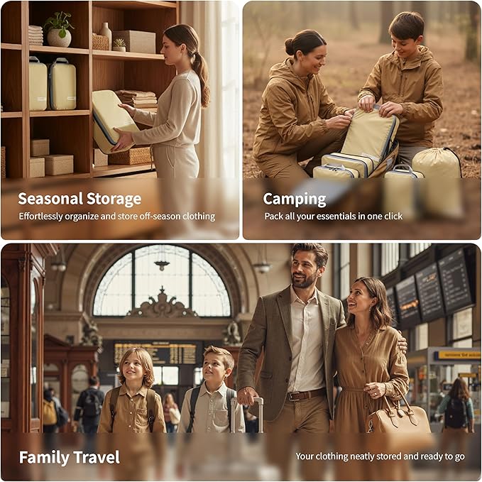 - Space Saver: The packing cubes for travel compression fit more items, and keep your luggage perfectly organized on the go.The packing cubes compression save 30% to 50% room (especially for puffy items) not only for trips but also for indoor storage.