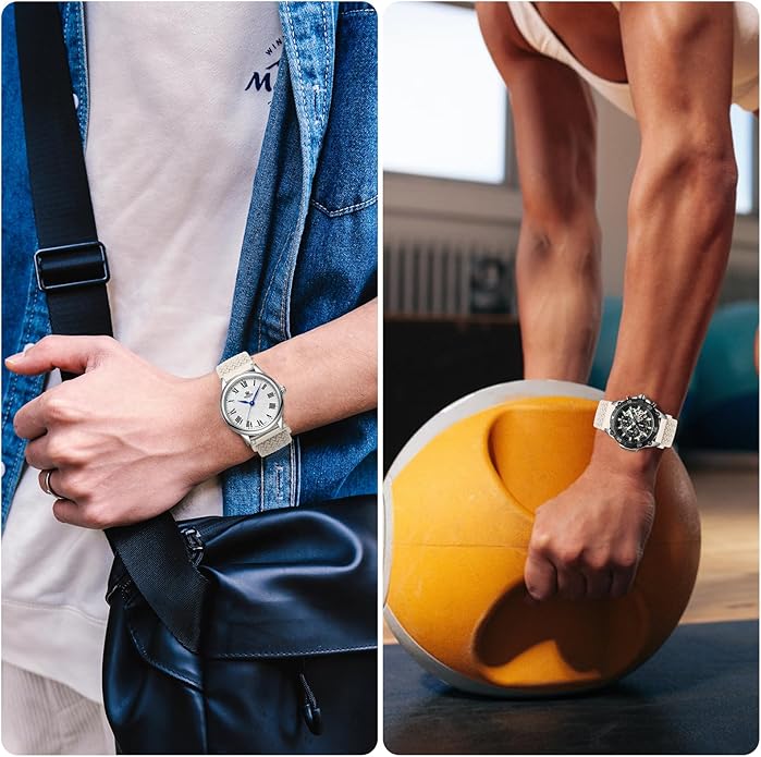 - 【Breathable & Durable Nylon】 22mm elastic watch bands crafted from high-quality elastic nylon. The dense nylon weave fully covers the entire strap, including the edges, ensuring a smooth touch without rubbing the skin—more comfortable for long wear. The strap is lightweight, sweat-resistant, machine-washable, and designed for all-day comfort. Perfect for sports, casual, and formal occasions, this versatile 22mm nylon watch band suits all ages.