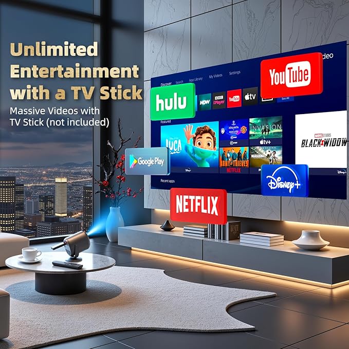 - 【All Copyright Video · Endless Entertainment】 Fully compatible with Fire TV Stick, Roku, Chromecast, and more—unlock Netflix, Disney+, Tencent Video, and over 600,000 movies/shows. Game, binge, or stream your favorites on the big screen. ※ Note: Due to licensing, Hulu requires a TV stick for smooth playback; all other apps work flawlessly. Your playlist, fully supported.