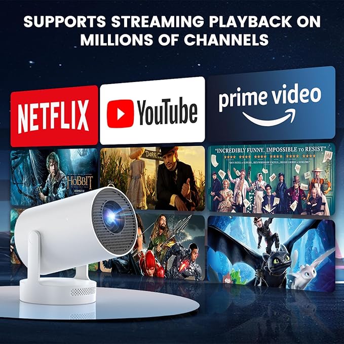 - 【Auto Keystone Correction & High Lumen Brightness】Say goodbye to tedious manual adjustments! The smart projector features intelligent keystone correction, enabling it to quickly present a regardless of the placement angle. Enhanced by high lumen brightness, the image details are sharp and clear, with vivid and full colors.The bluetooth projector doesn't affect viewing even during the day, easily creating an immersive movie-watching or gaming scene.