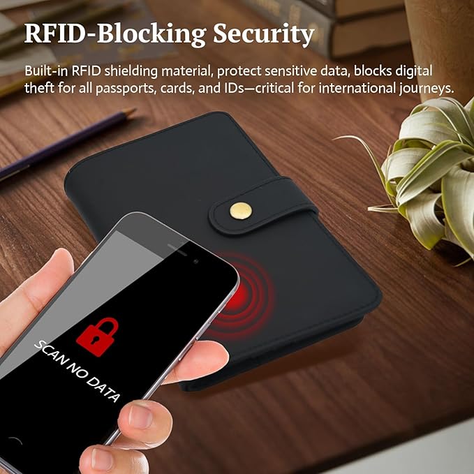 - 【RFID-Blocking Security】Designed with built-in RFID shielding material, protect sensitive data with this RFID passport holder for travel. Blocks digital theft for all passports, cards, and IDs—critical for international journeys.