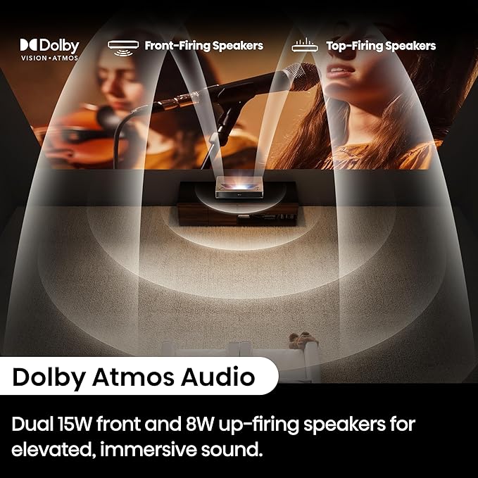 - 【Dolby Vision & Dolby Atmos】upgraded Dolby Vision with better HDR, greater color depth, and crisper images powered by Hisense Pro Laser Engine. Use Dolby Atmos, to amp up your audio-visual experience. Without any technical fuss as it automatically optimizes your audio-visual journey.