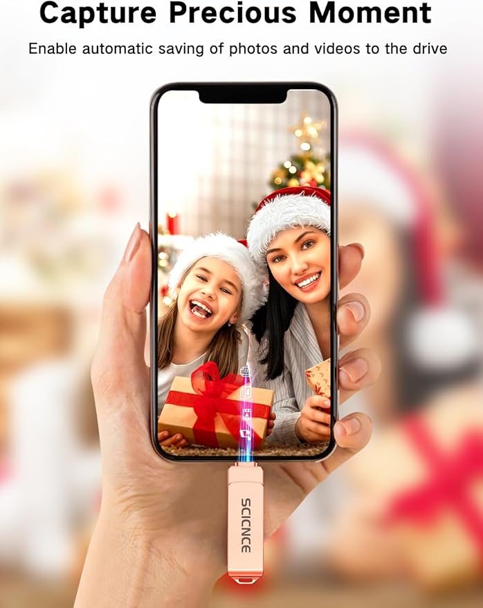 SCICNCE 256GB Flash Drive Intended for iPhone, USB Memory Stick Storage Backup for Photos Videos, Plug and Play No APP Required, Compatible with iPhone iPad Android and Computers (Rose Gold)