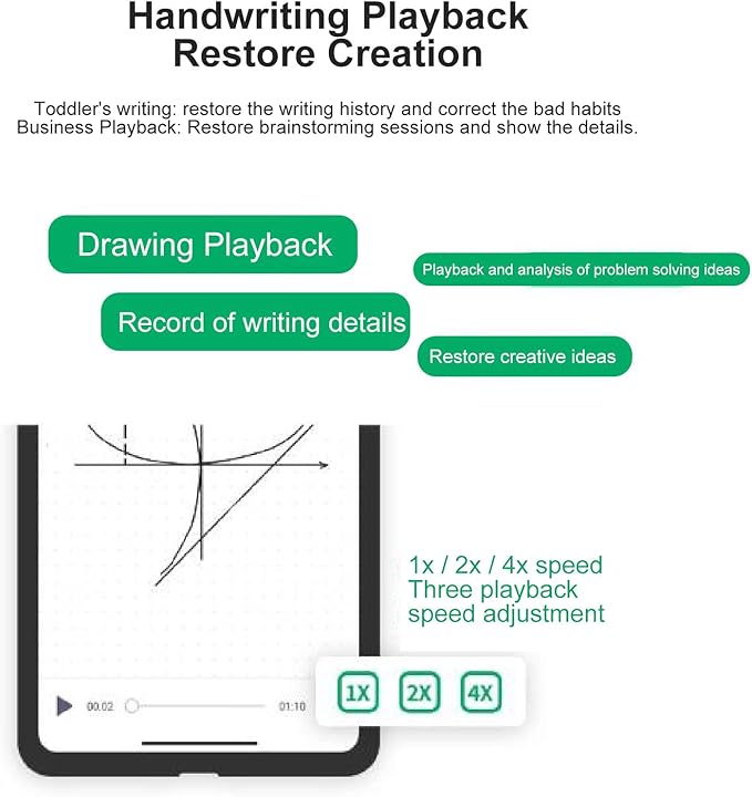 - Handwriting Playback: Review and revisit your creative process anytime, allowing you to see how your ideas were generated. Write smoothly without smudging, with support for 180 degree flat writing, prevent pages from falling out.
