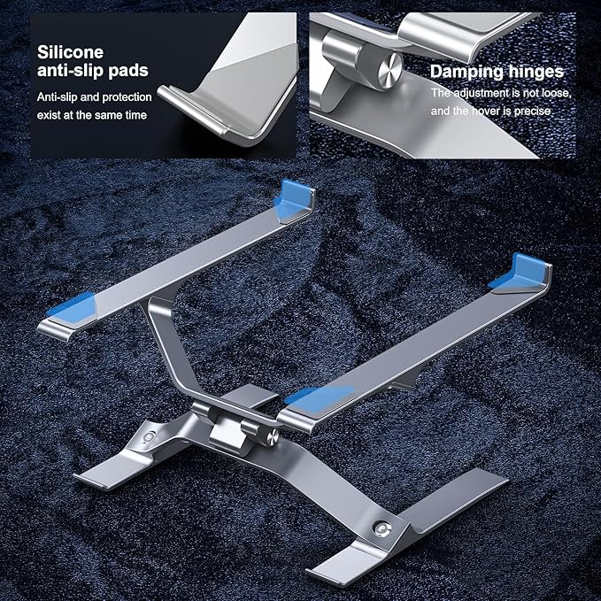 - Sturdy & Stable: The office laptop stand is totally made of thickened aluminum alloy, so the stand is sturdier and has less wobbly. The silicone on the holder hands sticks tightly and ensure your laptop stable on the stand. We also have silicone pad to prevent the stand from slipping on your desk.