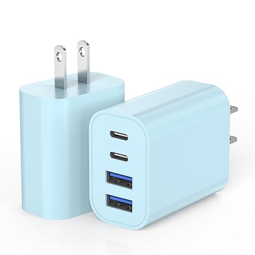 40W USB C Charger Block, [2 Pack] 4-prot USB Type C iPhone Fast Charging Brick, Multiport Apple Adapter for iPhone 17/17 Air/ 16 Pro/16 Pro Max/15/14/13/12, iPad Pro/iPad Air, iPad mini, iPad (Blue)