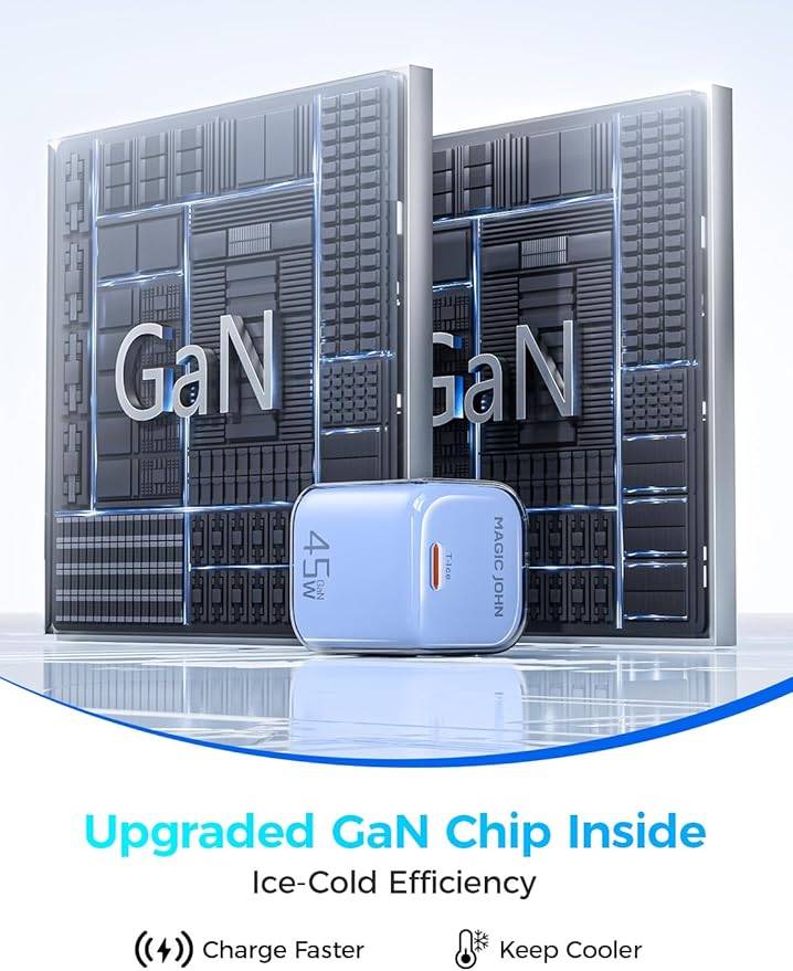 - Compact Powerhouse: MAGIC JOHN 45 W charger block is 70 % smaller than a standard adapter and just as fast—easy to take anywhere