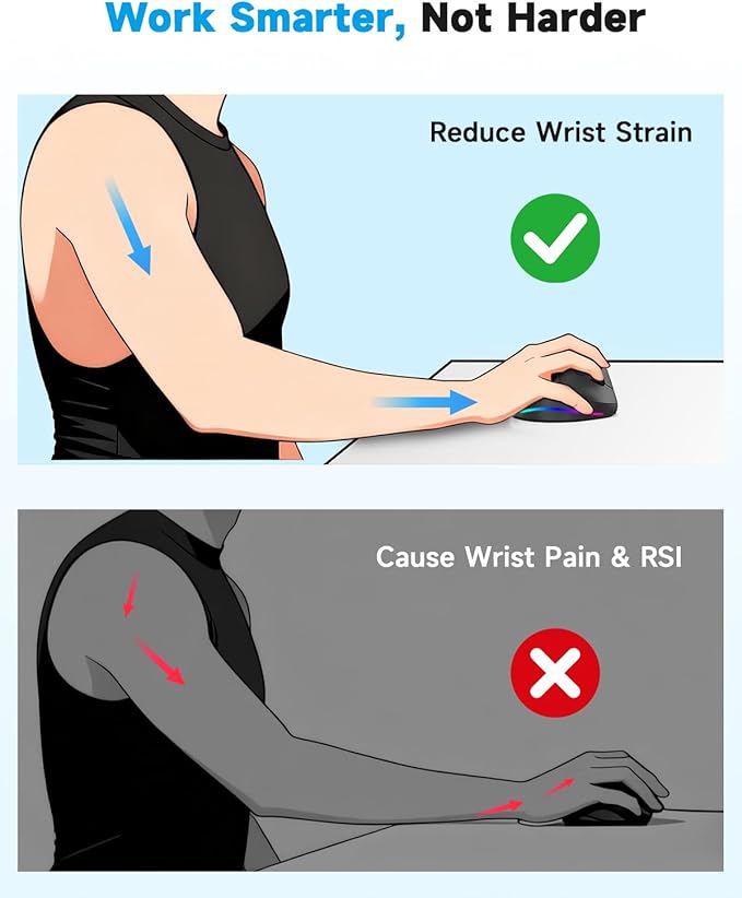 - Whisper-Quiet Operation: Keep your focus in quiet spaces. The vertical mouse features silent left and right clicks under 35dB, ideal for offices, classrooms, and libraries. (Note: Only the left and right buttons are quiet; other buttons make normal clicking sounds.)