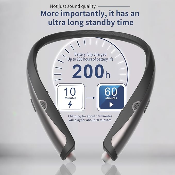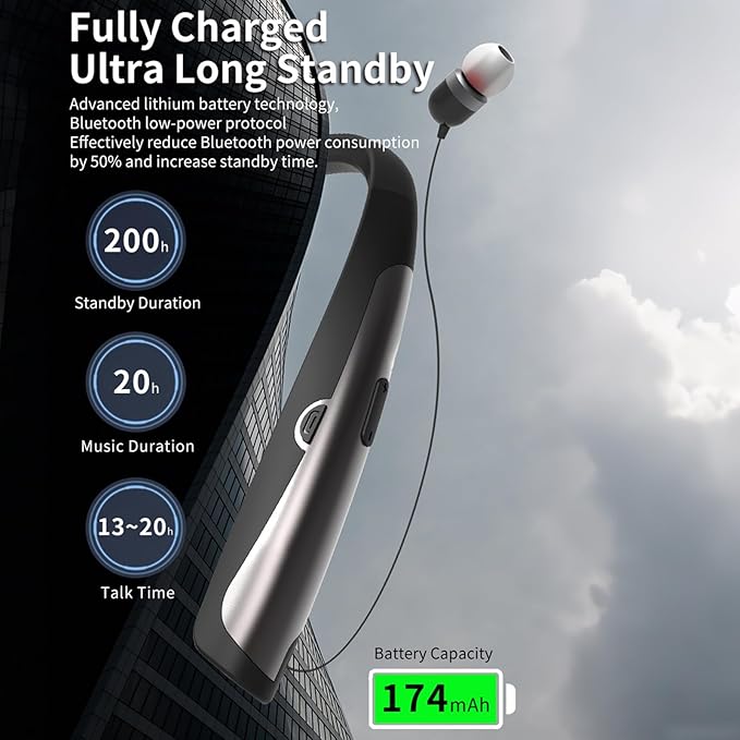 Bluetooth 5.0 Neckband Bluetooth Headphone, Sweat Resistant Noise Cancelling Stereo Headphones, and Retractable Ear Tips for Music, Conference, Videos(Bright Black¼