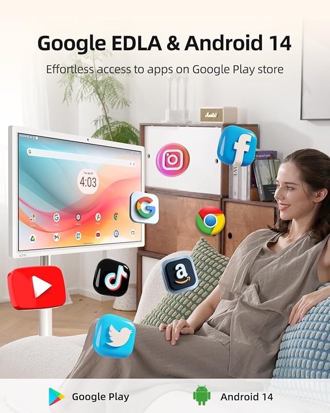 - Google EDLA Certified & Android 14: Boasting full Google certification, and being outfitted with the latest Android 14 operating system, this portable TV tablet provides you with quick access to your favorite apps on Google Play.
