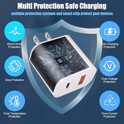 - [Super Fast Double USB A/C Charger Compatibility] The Fast Apple Dual USB A/C Charger Power Adapter Sets are Compatible With Apple iPhone 16,Apple iPhone 16 Pro,Apple iPhone 16 Pro Max,Apple iPhone 16 Plus,Apple iPhone 16e,Apple iPhone 15,Apple iPhone 15 Pro,Apple iPhone 15 Pro Max,Apple iPhone 15 Plus,iPad Pro 12.9-inch,11-inch,iPad Air 6th/5th/4th 10.9 inch,iPad MiNi 7th 6th 8.3 inch,iPad 10th Generation.and other USB C Devices