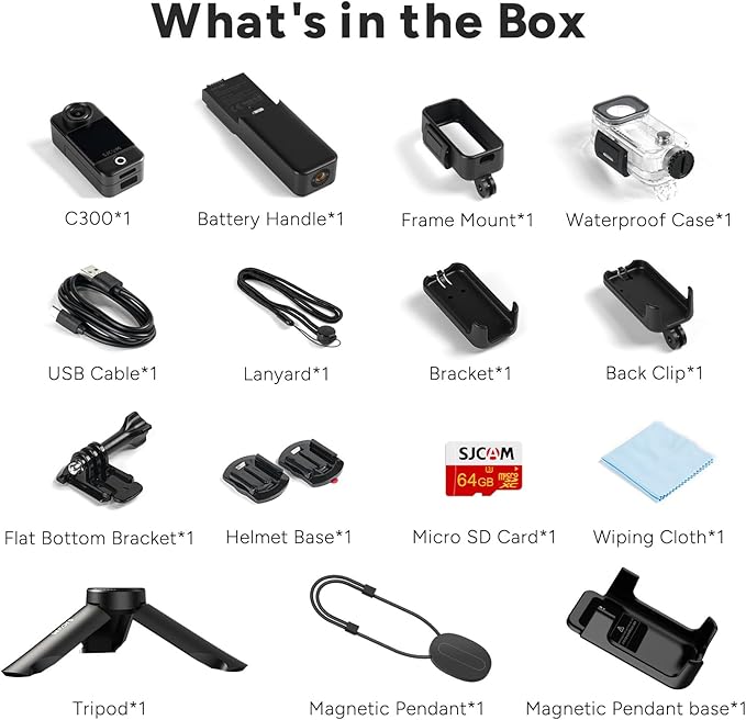 - 【Multi-scene, multi accessories】: The C300 adventure action camera comes equipped with a comprehensive set of accessories to suit any adventure. With a waterproof shell, cycling bracket, handlebar mount, helmet base, and more, you can effortlessly capture footage in diverse scenarios. Whether diving, biking, or skiing, the C300 ensures you're ready for any challenge, providing flexibility and convenience for all your outdoor activities.