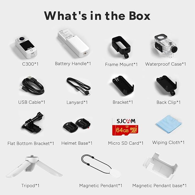 - 【Multi-scene, multi accessories】: The C300 adventure action camera comes equipped with a comprehensive set of accessories to suit any adventure. With a waterproof shell, cycling bracket, handlebar mount, helmet base, and more, you can effortlessly capture footage in diverse scenarios. Whether diving, biking, or skiing, the C300 ensures you're ready for any challenge, providing flexibility and convenience for all your outdoor activities.
