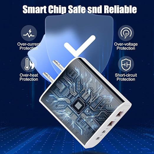 - [Multiport Type C Charger Fast Charging Safety & Reliability] Multiport USB Type C iPhone 16 15 Charger Adapter Certified RoHS,CE & FCC,Protect Devices from Over-Heated and Over-Currents,Over-Charging,and Short Circuits,Charging Will be Automatically Stopped When the Battery is Full.The 4 Port USB Type C Charger Fast Charging Block Featured With ABS + PC Fireproof Material,You Can Make Sure Your Digital Devices are Always Safe Charge.
