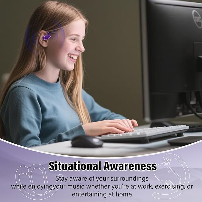 - Immersive Sound and Clear Calls: Equipped with built-in 14.2mm dynamic drivers, these open headphones wireless deliver rich audio quality that allows you to discern subtle nuances in music. Enjoy your favorite music with Advanced Directed Audio Technology that minimizes sound leakage for a more personal listening experience. The bluetooth earbuds are equipped with ENC noise reduces 80% ambient noise for crystal-clear calls, while maintaining crucial environmental awareness for outdoor safety.