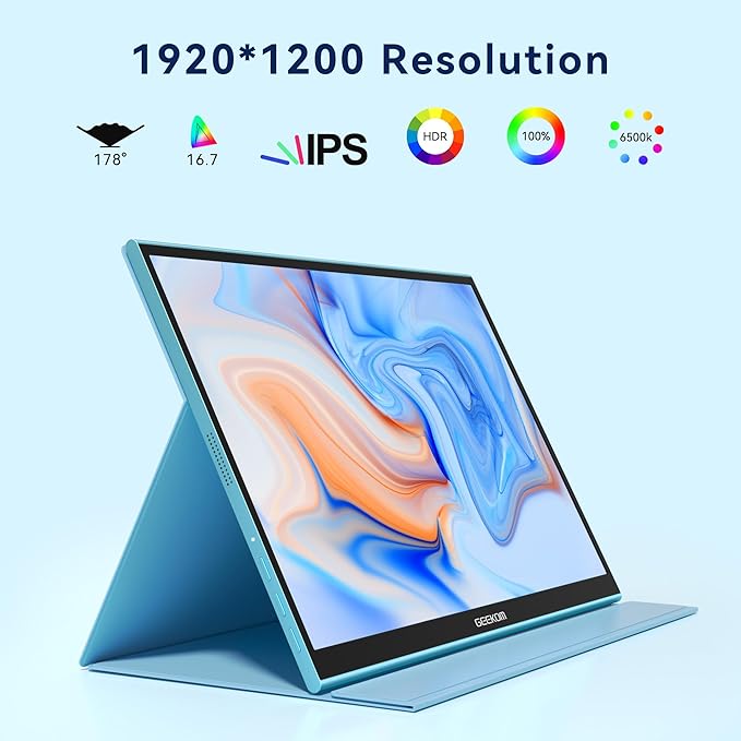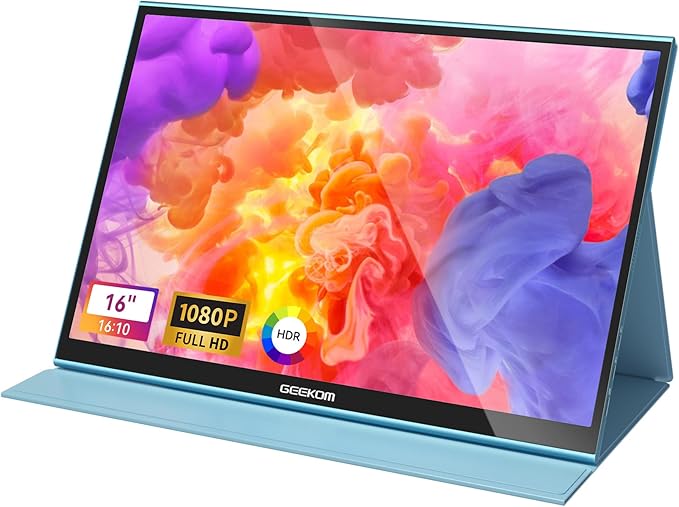 GEEKOM Portable Monitor(2025), 16'' 1200P FHD Laptop Monitor USB C HDMI Computer Display HDR Eye Care External Screen w/Smart Cover for PC Mac Laptop Phone
